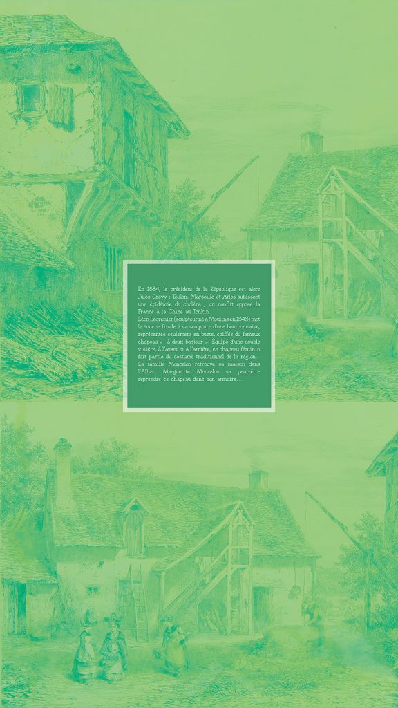 Mise en page des contenus de texte dans chaque salle. Ici texte principal
