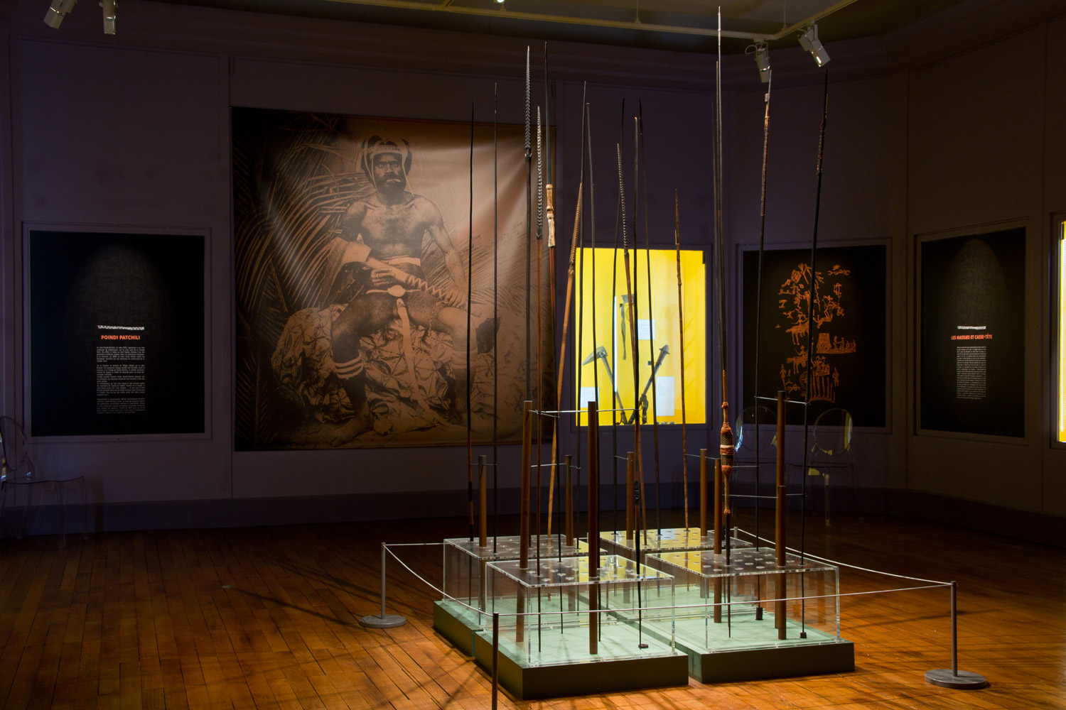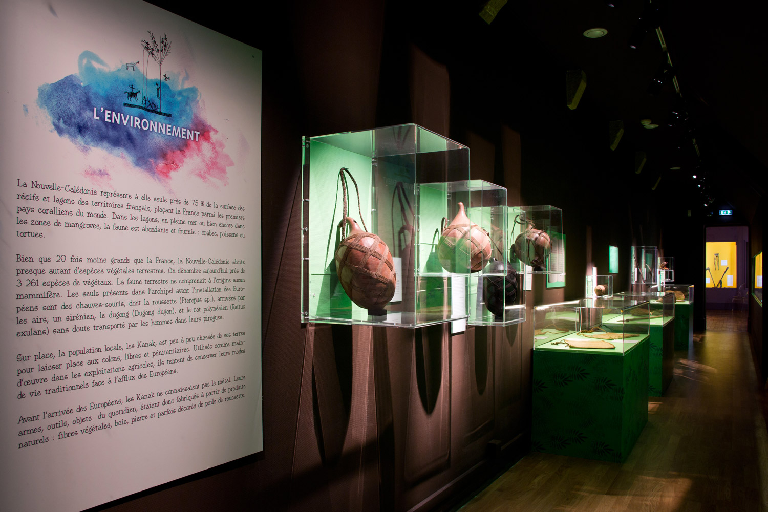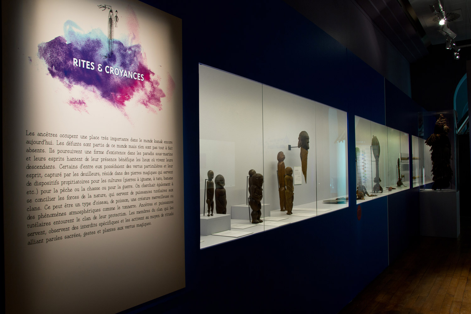 Vue de l'exposition Kanaks, et de la signalétique en premier plan