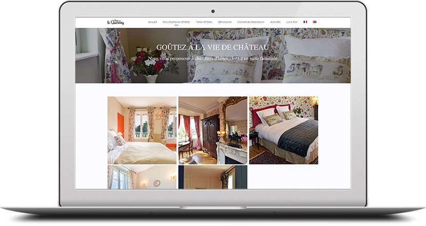 Site internet présentant la propriété, le confort des chambres, et autres services associés