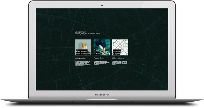 SITE DE LA NATIERE : création visuelle de la plateforme de jeux. Carousel de la partie jeux.